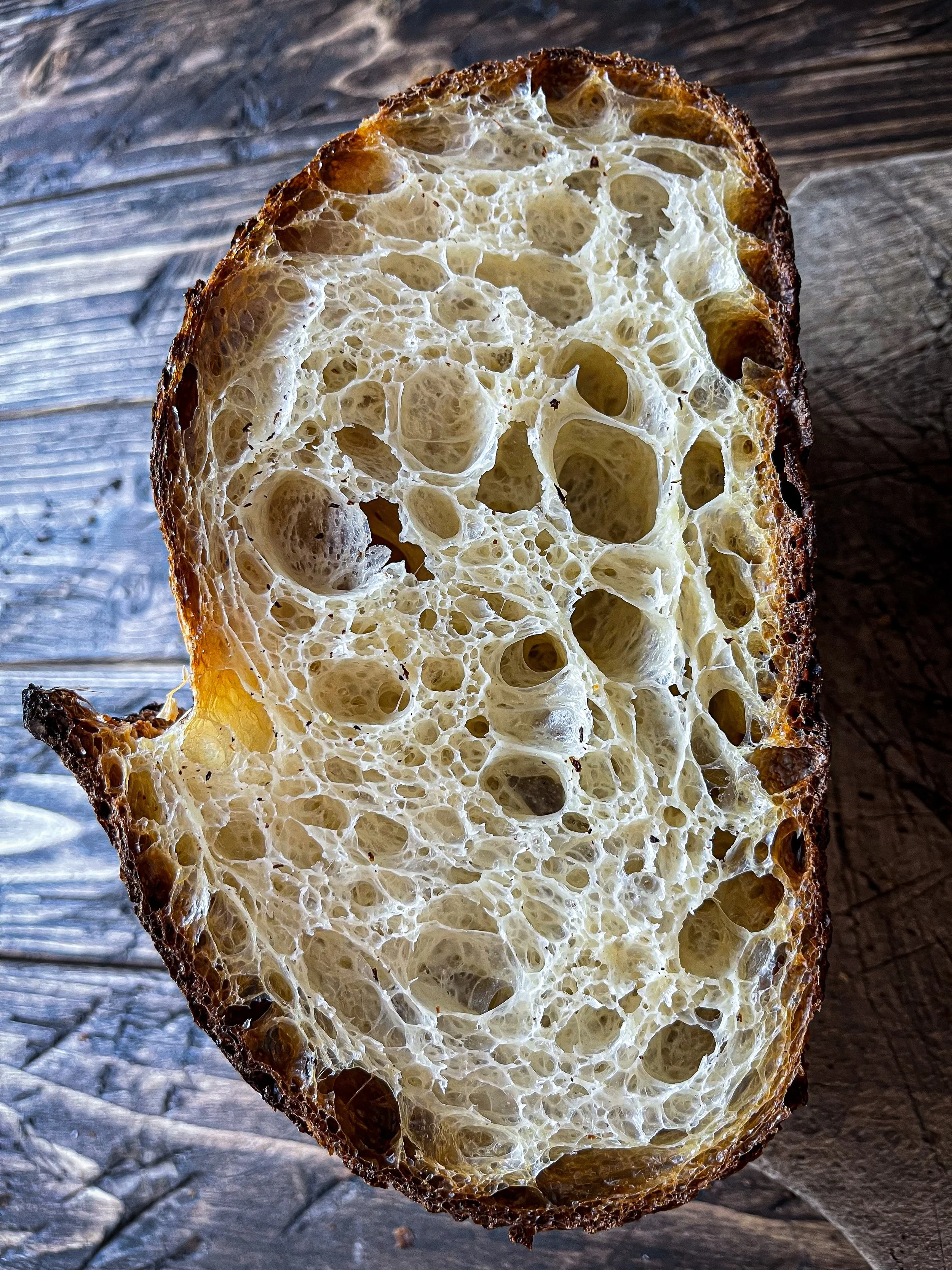 Intense 1-on-1, two-hour-long class presented on Google Meet where you will learn the most important things involved in achieving open crumb sourdough.